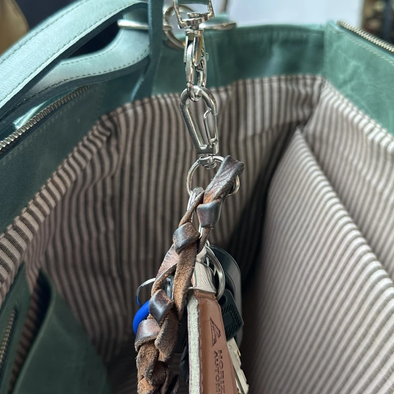 Practicidad Cotidiana: Incluye un listón de cuero con mosquetón integrado para mantener sus llaves siempre a mano y localizables.